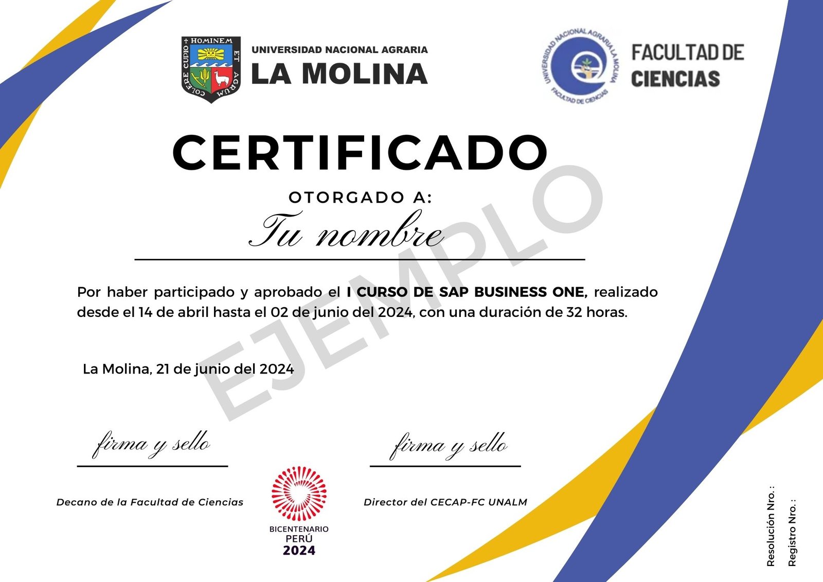 Todos nuestros cursos y especializaciones estan certificados por la Facultad de Ciencias de la Universidad Nacional Agraria la Molina - UNALM que cuenta con licenciamiento de la SUNEDU.
